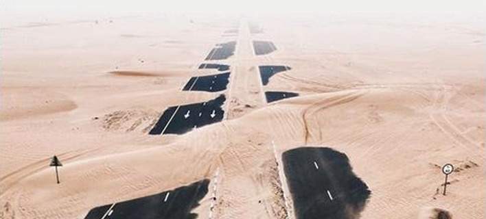 Ωστόσο, η φύση έχει την ικανότητα να χτυπά ξανά, όπως λέει και το γνωστό άσμα «είναι κακό στην άμμο να χτίζεις παλάτια». Ο Ειρηναίος κατάφερε να καταγράψει τις σουρεαλιστικές αεροφωτογραφίες, που δείχνουν πως η έρημος «κατατρώει» αργά αλλά σταθερά, όλα τα μεγάλα σύγχρονα έργα του ανθρώπου, όπως τους πανάκριβους αυτοκινητόδρομους και τους οικισμούς στα Ηνωμένα Αραβικά Εμιράτα.