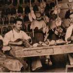 Παλιότερα όμως ο τσαγκάρης ήταν αυτός που έφτιαχνε ένα παπούτσι από την αρχή. Το τσαγκαράδικο, ο χώρος όπου ήταν στημένος ο πάγκος του με όλα τα σύνεργα, ήταν ανοιχτό απ’ το πρωί μέχρι αργά το βράδυ. Στον πάγκο βρίσκονταν, βελόνες, σακοράφες, σουβλιά, σφυράκια, λίμες, τανάλιες καλαπόδια, που έβαζε μέσα στο παπούτσι. Δεν υπήρχαν τότε κόλες και μηχανές. Εκεί, σκυμμένος πάνω από τον πάγκο του, δούλευε ώρες ατελείωτες φορώντας πάντα τη χαρακτηριστική δερμάτινη ποδιά του. Εκεί δεχόταν και τις παραγγελίες των πελατών του.