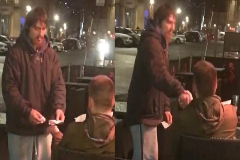 Προς έκπληξη όλων, ο γενειοφόρος άστεγος επέστρεψε στο σημείο που καθόταν η παρέα, κρατώντας ένα χαρτονόμισμα των 20 λιρών αλλά και την απόδειξη της ανάληψης από το ΑΤΜ! Αφού παρέδωσε την κάρτα στον κάτοχό της, τον ευχαρίστησε και απομακρύνθηκε.