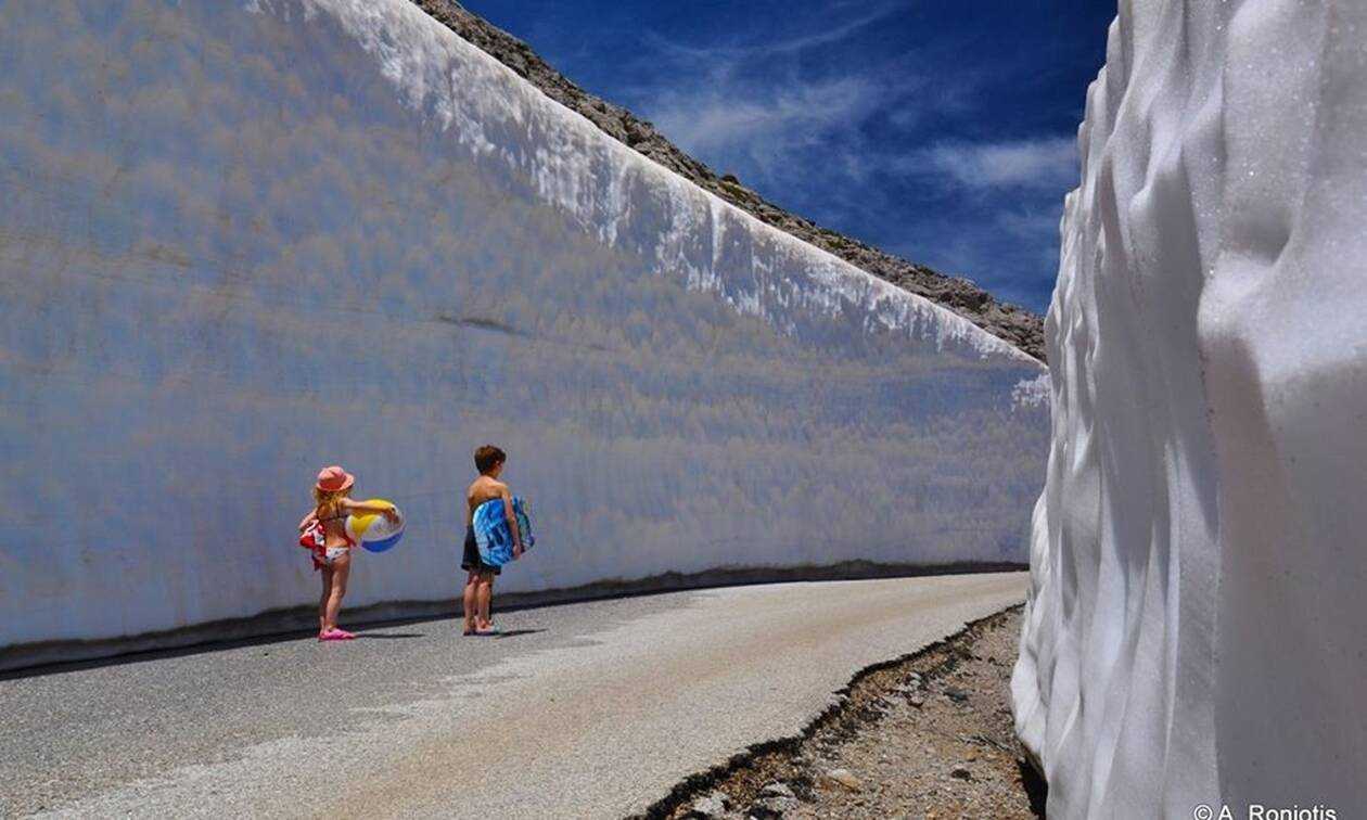 Ωστόσο έκπληξη προκαλεί το γεγονός πως στην Κρήτη και για την ακρίβεια στη περιοχή Σκίνακας στο θρυλικό βουνό του Ψηλορείτη, υπάρχει δροσιά και χιόνια.