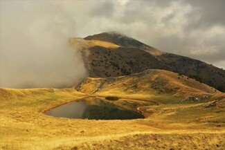 Η Δρακόλιμνη και η κορυφή του Σμόλικα.