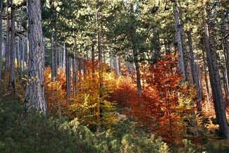 Ωστόσο, πολύχρωμα φυλλοβόλα ξεπροβάλλουν από παντού, μεμονωμένα ή σε συστάδες, και σπάνε τη μονοτονία του βαθυπράσινου των κωνοφόρων που κυριαρχεί στη μακροσκελή οροσειρά. Αν θέλεις να πάρεις κοντά σου τις πιο όμορφες φθινοπωρινές εικόνες, το καλύτερο που έχεις να κάνεις είναι να ακολουθήσεις κάποια πεζοπορική διαδρομή, κάποιο βατό μονοπάτι, έστω και σύντομο, για να βρεθείς μέσα στο δάσος.