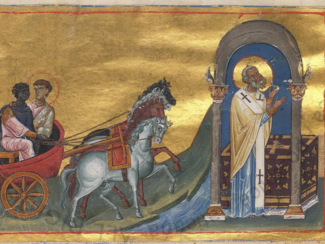 Εικονογράφηση από το Βυζαντινό Μηνολόγιο του Βασιλείου Β' του Φιλίππου και του Αιθίοπα ευνούχου. PUBLIC DOMAIN VIA WIKIMEDIA