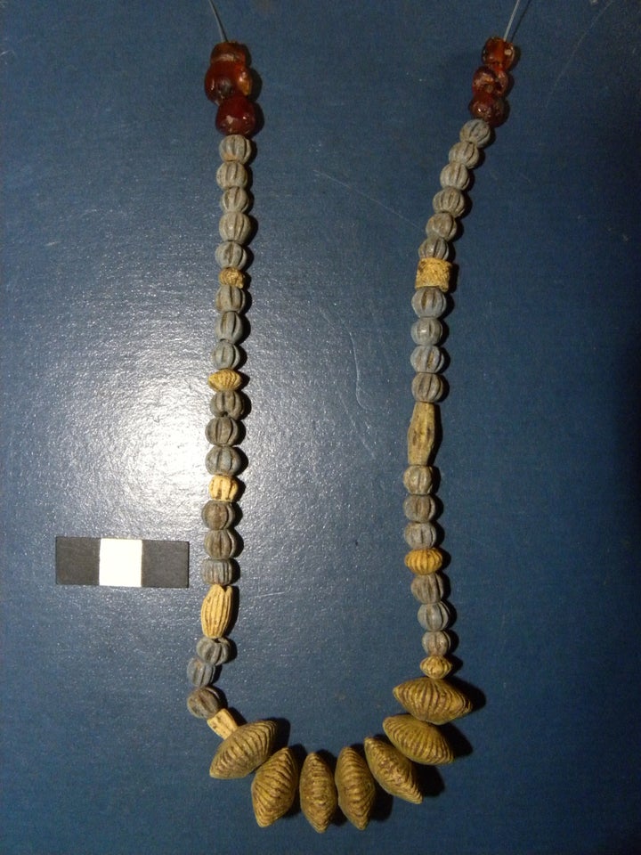 Το χώμα με τα οστά του μωρού και χάντρες από το περιδέραιο.