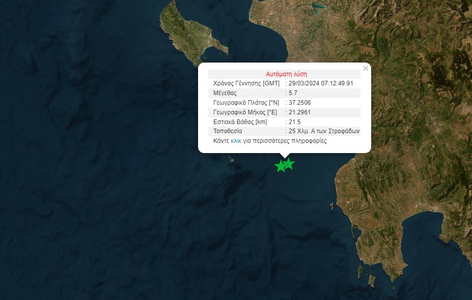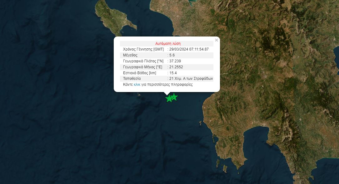 «Δίδυμοι» σεισμοί σημειώθηκαν ανοιχτά της Ηλείας και συγκεκριμένα κοντά στις Στροφάδες. Συγκεκριμένα,