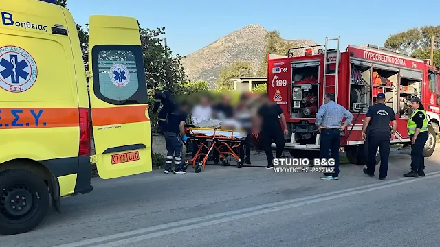 Στο σημείο έφτασε και το ΕΚΑΒ Αργολίδας, που παρέλαβε τους τραυματίες και τους μετέφερε στο Νοσοκομείο.