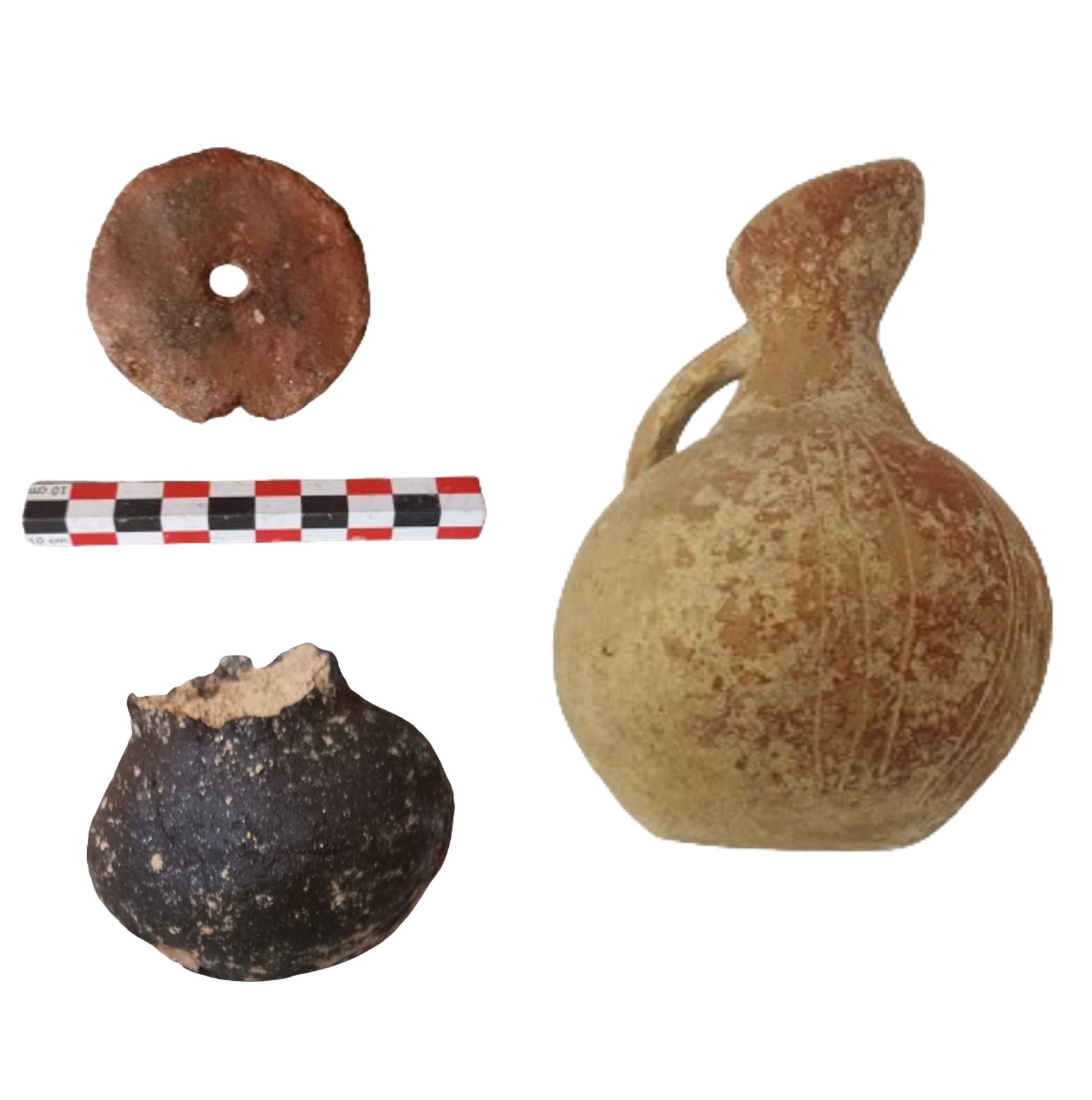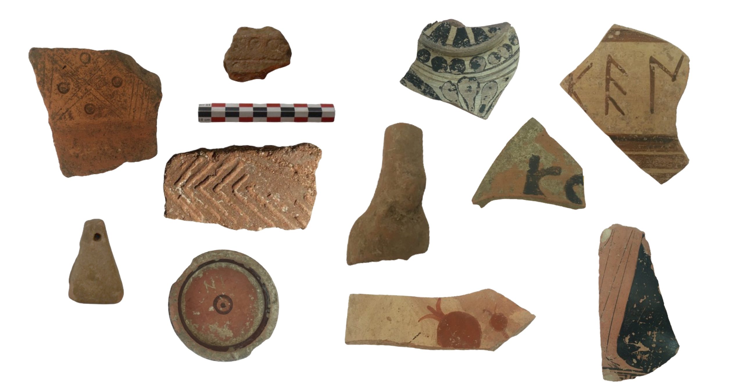 Τα πρωιμότερα κεραμικά ευρήματα από τα Συγκροτήματα ΑΤ και ΒΤ ανήκουν στην πρώιμη αρχαϊκή περίοδο, στα τέλη του 7ου/αρχές 6ου αιώνα, ωστόσο η πλειονότητα τους χρονολογείται στον ύστερο 6ο και 5ο αιώνα π.Χ. Μικρή ποσότητα αγγείων χρονολογείται και στον 4ο αι.π.Χ. Βρέθηκαν πολλά θραύσματα μεγάλων πίθων με ανάγλυφη διακόσμηση του τύπου «μετοπών – τριγλύφων», αλλά και με κυματοειδείς ταινίες, θραύσματα εμπορικών αμφορέων, μελαμβαφής κεραμική του 6ου και 5ου αιώνα π.Χ., και αρκετές πήλινες πυραμιδόσχημες αγνύθες. Ιδιαίτερο ενδιαφέρον παρουσιάζει μαρμάρινο αντικείμενο, πιθανόν ναύδετο.
