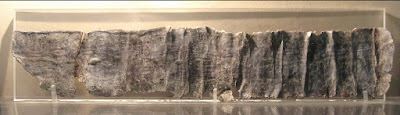 Εικόνα 6: Ενεπίγραφο μολύβδινο έλασμα τυλισμένο σε ρολό (κατάδεσμος) 4ος αι. π.κ.ε. μέγιστο σωζόμενο ύψος 28,4 εκατ., μέγιστο σωζόμενο πλάτος 5,7 εκατ. Νέο Αρχαιολογικό Μουσείο Πέλλας. Ο κατάδεσμος έγραφε: «της Θετίμας και του Διονυσοφώντα την τελετή και το γάμο δένω με γραπτή κατάρα και όλων των άλλων γυναικών, είτε χήρες είναι, είτε παρθένες, κυρίως όμως της Θετίμας. Και παραδίνω αυτόν τον κατάδεσμο στον Μάκρονα και τους δαίμονες. Και μόνον όταν εγώ ξεθάψω και ξετυλίξω και διαβάσω πάλι αυτά τα λόγια, τότε μονάχα να παντρευτεί ο Διονυσοφώντας. Προηγουμένως να μην πάρει άλλη γυναίκα του εκτός από μένα. Μονάχα εγώ να γεράσω στο πλευρό του Διονυσοφώντα, καμιά άλλη. Σας ικετεύω προσφιλείς δαίμονες δείξτε οίκτο στη Φίλα γιατί με έχουν εγκαταλείψει όλα τα αγαπημένα μου πρόσωπα και είμαι έρημη. Αλλά φυλάξτε τον κατάδεσμο για χάρη μου, ώστε να μη γίνουν αυτά, κι η κακιά Θετίμα κακά να χαθεί … κι εγώ να βρω ευδαιμονία και μακαριότητα».
