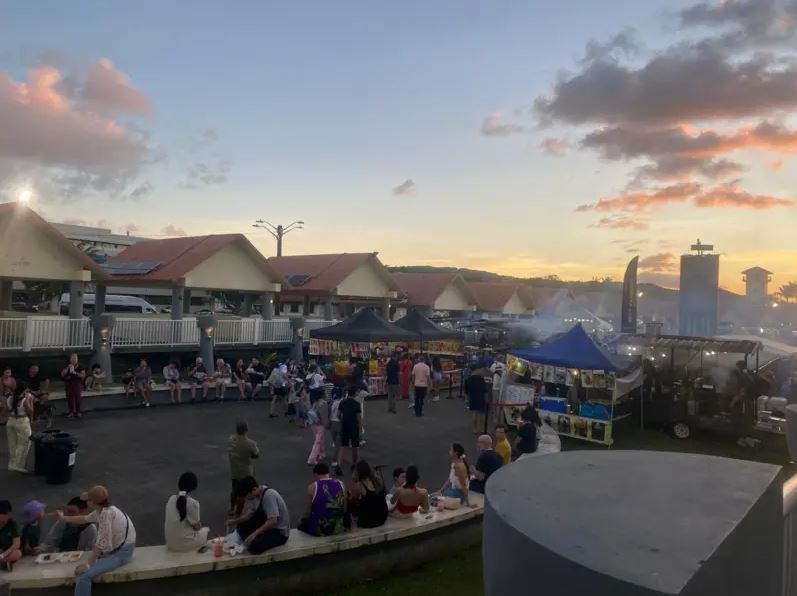 Στο Chamorro Village, μια νυχτερινή αγορά που σερβίρει παραδοσιακά φαγητά και φιλοξενεί το ένα από τα δύο κέντρα εκτόξευσης πυροτεχνήματα του νησιού.