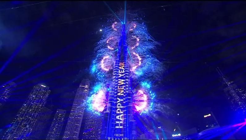 Στο Ντουμπάι των Ηνωμένων Αραβικών Εμιράτων, οι κάτοικοι απόλαυσαν το θέαμα των πυροτεχνημάτων από το ψηλότερο κτίριο του κόσμου, μετά από μια παράσταση με φωτιστικά εφέ, μουσική και πίδακες νερού – ένα πραγματικά εντυπωσιακό θέαμα.